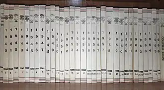 - ^ in 1979 there were 3 vols published; in following years the numbers were: 1980 2 vols, 1981 2 vols, 1982 1 volume, 1983 2 vols, 1984–1985 no volume, 1986 1 volume, 1987 1 volume, 1988 3 vols, 1989 2 vols, 1990 3 vols, 1991 3 vols, 1992 no volume, 1993 1 volume (index)