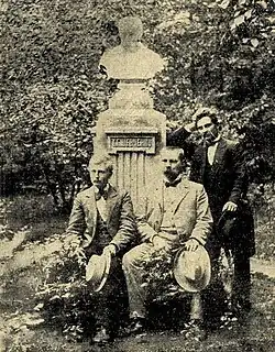 In 1900, the first monument to Taras Hryhorovych Shevchenko in Ukraine was erected on the territory of the garden in the Alchevsky estate, despite the official ban of the tsarist authorities.[10] The figure of the poet was especially revered in the family of educators Alchevsky. The bust of the poet was made of white marble by sculptor Volodymyr Beklemishev, almost the same age as Beketov, and like the latter, he also graduated from Maria Raevska-Ivanova's drawing school in Kharkiv and the St. Petersburg Academy of Arts. Student youth, Sunday school students, budding poets and guests of the Alchevsky family, including, for example, Ukrainian political and public figure Mykola Ivanovych Mikhnovsky, the first aviator of Ukrainian origin, public and political figure Levko Makarovich Matsievich, Ukrainian actor Severyn Fedorovych Pankivskyi and others, often gathered near this monument.