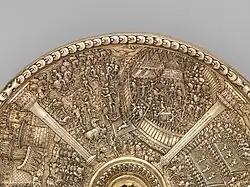 The Aldobrandini Tazze are a set of 12 silver-gilt standing cups in the shallow tazza shape (plural tazze), sometimes described as bowls or dishes. They are outstanding examples of Renaissance metalwork, described by John Hayward as "the most impressive single monument of Italian and perhaps European goldsmith's work of the 16th century",[1] and by the Victoria and Albert Museum as "one of the most spectacular groups of 16th century silver to survive".[2]