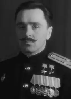 Aleksey Yefimovich Mazurenko (Russian: Алексе́й Ефи́мович Мазуре́нко; 20 June [O.S. 7 June] 1917 – 11 March 2004) was the commander of the 7th Guards Assault Aviation Regiment in the Black Sea Fleet during World War II. He was twice awarded the title Hero of the Soviet Union during the war and remained in the military afterwards, reaching the rank of General-major.