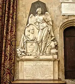 Champion remained in office until November 1774.[2] He retired to Hatchlands Park near Guildford[4] and died at Bath on 15 March 1793: there is a monument to him in Bath Abbey by Nollekens, which says, 'he rose, in the course of twenty years' active service in India, to the chief command of the company's troops in Bengal.'[5]