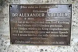 After his death in 1977, Kreuter was buried in the former chapel of the dead in Waidring.