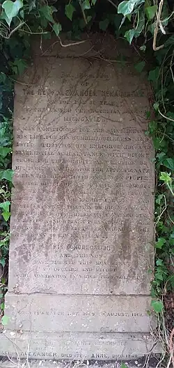 McNaughtan died of heart disease at the family home of Heatherbank on 6 August 1884.[2] He was buried under his father's headstone at the New Kilpatrick church alongside others in his family.
