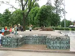The Architects (Зодчие), a bronze sculptural group by Alexander Taratynov was installed on June 15, 2011. Commissioned by Gazprom, it depicts the great architects of the Russian Empire. For a statue of a French architect Thomas de Thomon, the image of British chemist and mineralogist Thomas Thomson was mistakenly used. Taratynov blamed Wikipedia for the error but also himself for not checking with a historian to verify the image he used was accurate.[1][2]