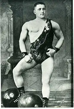 In 1897, on February 20, at the age of 20, he set a world record, surpassing Hans Beck in a push of a bar with both hands at the same time 386 pounds (158 kg).