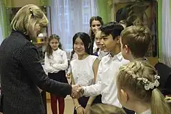 A trained psychologist, she ran workshops throughout Ireland and Great Britain.[1] The Duchess was the founder of the Pushkin Prizes and the Pushkin Trust, organizations promoting art therapy for young people. The Duchess held many patronages, such as Abercorn House at Cambridge House Grammar School, the Omagh Community Youth Choir and the BEARR Trust.[10] She was honorary secretary of the Northern Ireland Centre for Trauma & Transformation in Omagh, County Tyrone.[11] Her work in Omagh was in response to the 1998 Omagh bombing.