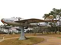 52-7080 | Republic F-84F Thunderstreak | Built as a Republic F-84F-40-RE Thunderstreak. On April 23, 1963, this aircraft crashed at the end of runway 22 at MacDill Air Force Base; the pilot was uninjured. According to the sign in front of the aircraft, this plane was previously at Bringhurst Park in Alexandria, and was unveiled at its current location on April 25, 1992, during a 391st FBS homecoming.[14] | ![]() |