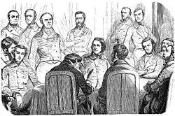 Led by General Cavaignac, the suppression of the uprising was supported by Tocqueville, who advocated the "regularization" of the state of siege declared by Cavaignac and other measures promoting suspension of the constitutional order.[19] Between May and September, Tocqueville participated in the Constitutional Commission which wrote the new Constitution. His proposals, such as his amendment about the President and his reelection, reflected lessons he drew from his North American experience.[20]