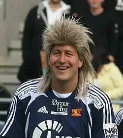 Alf Kåre Tveit during an exhibition match against Liverpool F.C. in July 2008 at Viking Stadion. Tveit sports a hairdo similar to the one he wore in the late 1980s | |||
