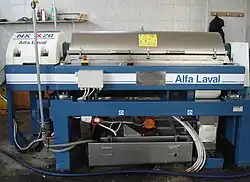Alfa Laval AB is a Swedish company, founded in 1883 by Gustaf de Laval and Oscar Lamm. The company started by providing centrifuges to dairies to be used to separate cream from milk. It now deals in the production of specialised products for heavy industry. The products are used to heat, cool, separate and transport such products as oil, water, chemicals, beverages, foodstuffs, starch and pharmaceuticals.