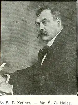 Hales was not content to be merely a writer of fiction, he went to Bulgaria and fought in the Ilinden–Preobrazhenie Uprising against the Turks in 1903 in the band of general Ivan Tsonchev – the leader of the Supreme Macedonian-Adrianople Committee. This was followed by experience as a war correspondent in the Russo-Japanese War, and in the following years much lecturing in England, South Africa, Australia and South America. Wherever there was a mining field Hales visited it, and in South America he made a special study of the agricultural and pastoral possibilities of that continent. When World War I began he endeavoured to enlist but was too much over age. Hales worked as a war correspondent in France, and then went to Italy, where he met General Garibaldi and endeavoured to join the Italian army. Garibaldi, who was born in Australia, tried to help him without success, and Hales again worked as a correspondent. In 1918 he published Where Angels Fear to Tread, a series of able sketches on matters arising out of the war. After peace came Hales lived mostly in England and wrote a large number of novels, of which about 60 are listed in Miller's Australian Literature. Many of these had large circulations; of the McGlusky series of some 20 volumes about 2,000,000 copies were sold. Hales published a volume of verse, Poems and Ballads, in 1909, which is not important as poetry, and he also wrote some unpublished plays. He died in England on 29 December 1936. He was married twice; firstly to Emmeline Pritchard of Adelaide who died in 1911, and secondly in 1920 to Jean Reid. There were four sons and a daughter by the first marriage.