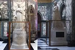 - Two relief panels and two spandrels in marble, 1916, representing the Golden Jubilee of Queen Victoria, the Queen's proclamation of 1858, Industry and Commerce for the Victoria Memorial, Kolkata[64]