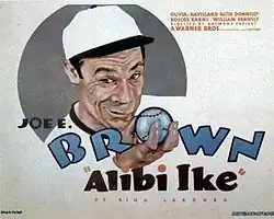 Alibi Ike is a 1935 American romantic comedy film directed by Ray Enright and starring Joe E. Brown, Olivia de Havilland and William Frawley. Based on the short story of the same name by Ring Lardner, first published in the Saturday Evening Post on July 31, 1915, the film is about an ace baseball player nicknamed "Alibi Ike" for his penchant for making up excuses. Lardner is said to have patterned the character after baseball player King Cole.