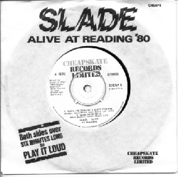 "'Alive at Reading'" is an extended play (EP) by the British rock band Slade, released in 1980. Alive at Reading includes three live tracks recorded at the band's performance at the 1980 Reading Festival. The EP was produced by Slade and reached No. 44 in the UK, remaining in the charts for five weeks.[2] The EP was later included in its entirety on the 2006 Salvo compilation Slade Alive! – The Live Anthology.