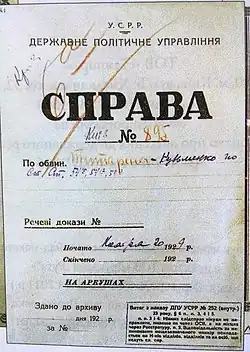 On March 22, 1922, the commission was reformed into the State Political Administration (DPU) by a resolution of the All-Ukrainian Central Executive Committee.[1]