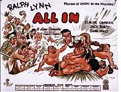 All In is a 1936 British sports comedy film directed by Marcel Varnel and starring Ralph Lynn, Gina Malo and Garry Marsh.[2] The owner of a racing stables has high hopes of winning The Derby, but fate intervenes. It is also known by the alternative title Tattenham Corner, from the play on which it is based.