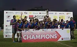 The All India & South Asia Rugby Tournament is an amateur league competition for rugby union football clubs in India.[2] The competition has been played since 1924.[3] In 2017 ten teams took part in the men's edition, with Delhi Hurricanes securing the championship.[4] The 2016 tournament also saw the first women's XVs rugby competition, with six teams participating, and the championship going to the team from the Odisha Rugby Football Association.[5]
