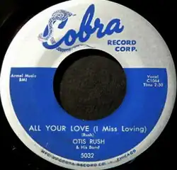 "All Your Love (I Miss Loving)" or "All Your Love" is a blues standard written and recorded by Chicago blues guitarist Otis Rush in 1958. Of all of his compositions, it is the best-known with versions by several blues and other artists.[1] "All Your Love" was inspired by an earlier blues song and later influenced other popular songs.