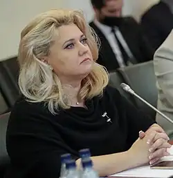 Alla Leonidovna Salaeva (Russian: Алла Леонидовна Салаева; born 14 September 1979) is a Russian political figure and deputy of the 8th State Duma. From 2003 to 2012, Salaeva worked at the department of culture at the Cheboksary city administration. From 2012 to 2020, she was the vice-president of social affairs. On 23 September 2020, Salaeva was appointed acting head of the Ministry of Education of the Chuvashia. On 9 November 2020, she became the vice-president of the Republic's Ministry of Education and Youth Policy. Since September 2021, she has served as deputy of the 8th State Duma.[1][2][3]