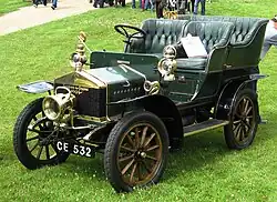 1903–1908 | 7 | Flat twin 7 hp | Rear-engined. Four-seater. Although not put into production until 1903 this car had actually been shown at the 1900 National Show. Described as being of "novel construction" with a mixed shaft, gear and belt transmission, combined with great inefficiency. | ||