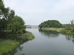 Alley Creek flows northward through the valley within which the park is located, emptying into Little Neck Bay. Alley Creek is surrounded by some of the last remaining old-growth forest in Queens.[8] The creek is crossed by a masonry-and-metal span carrying Northern Boulevard and a viaduct carrying the Long Island Rail Road's Port Washington Branch.[3] A stream from Oakland Lake, which was buried after the Cross Island Parkway was built, is a left-bank tributary of Alley Creek.[15]