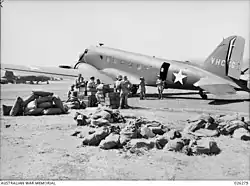 The first air transport unit in SWPA was the Air Transport Command, a United States Army Air Forces (USAAF) unit which was formed at RAAF Base Amberley in Queensland on 28 January 1942. It was equipped with five C-53s originally bound for the Philippines, and two B-18s and a C-39 that had escaped from there.[134] Only two of the original 14 pilots were fully qualified on transports; the rest had to be retrained. Of the 19 airmen, 12 were trained as aircrew members.[135] It was redesignated the US 21st Transport Squadron on 3 April. On the same date, the US 22nd Transport Squadron was formed at Essendon Airport in Victoria with former Royal Netherlands Indies Airways (KNILM) and Royal Netherlands East Indies Army Air Force (RNEIAAF) aircraft that had arrived in Australia from Java.[136][137] The two squadrons were redesignated the 21st and 22nd Troop Carrier Squadrons on 26 July.[136]
