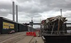 From 2013, she was berthed at No 2 Victoria Dock (Melbourne), mounted on a submergible barge, undergoing an extensive refit to return her to survey so she can recommence sail training.[7] On 16 October 2021 she was lifted off the barge and back into the water by the cargo ship AAL Shanghai and was ready for re-rigging and her internal fit-out.[8]
