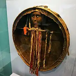 Historically, the traditional clothing of Southern Altaian men and women was very similar with little differences between the two.[33] Average clothing consisted of long shirts with wide breeches, robes, and fur coats. Other apparel often included fur hats, high boots, and sheepskin coats.[33] Northern Altaians and some Teleuts traditionally wore short breeches, linen shirts, and single-breasted oriental robes. Despite the fact that most Altaians today wear modern clothes, traditional wear still remains in use.[11]