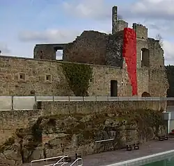 In 1690 the castle was destroyed again, this time for good, during the War of the Palatine Succession by French troops. Thereafter it was used as a quarry until the mid-19th century when this was banned by the government of the Kingdom of Bavaria. Until 1933 the terrain remained in the hands of the counts of Leiningen (Leiningen-Westerburg-Altleiningen line), before it was procured by the county of Frankenthal. In 1962 the ruins were listed and the schloss wing rebuilt in the six years that followed. In doing so they incorporated the wall remains on the western side.
