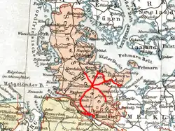 The Altona-Kiel Railway Company (German: Altona-Kieler Eisenbahn-Gesellschaft, AKE) was a joint-stock company, established under the law of Denmark in personal union with the Duchy of Holstein, that built and operated an 105 km railway line between Altona and the Baltic Sea port city of Kiel. Altona was at that time the second largest city under Danish rule and the railway line was the first built in Danish-controlled territory.