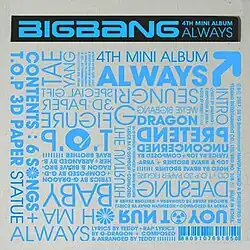 Always is the first Korean EP by South Korean boy band Big Bang, released under YG Entertainment on August 16, 2007.[1] Commercially, the album recorded pre-orders of 30,000 copies[2] and sold over 55,000 copies by the end of October 2007.[3]