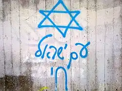 Am Yisrael Chai (Hebrew: עַם יִשְׂרָאֵל חַי, pronounced [am jisʁaˈʔel χaj]; lit. 'The People of Israel Live') is a slogan of solidarity among Jews. It is used to express strength and unity, typically in the face of adversity, but also in moments of peace and prosperity. To this end, it has historically featured in Jewish music, literature, art, and politics.