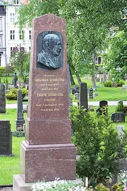 Amandus Schibsted is buried at Vår Frelsers gravlund in Oslo.