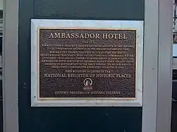 The Ambassador Hotel was constructed in 1911 and an addition was completed in 1922. In 1923, the hotel was renamed Hotel Ambassador. In 1929, the theater was converted to a garage.[3]