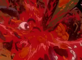 Japanese academic Osamu Tsukihashi compared the direction of the battle between Unit 01 and Bardiel to Sergei Eisenstein's film Aleksandr Nevsky (1938). As in Aleksandr Nevsky, close-up shots depicting the facial expressions of Eva units are first used during the clash, followed by a shot of the scenery, and a description of the movement.[50] Hiroki Azuma also noted Anno uses directorial techniques similar to those of Jean-Luc Godard in "Ambivalence" and other Evangelion episodes.[10] According to Azuma, Anno was not directly influenced by Godard; however, Anno named Kihachi Okamoto, who was influenced by Godard, among his influences.[11] Trees and road signs are framed throughout the clash against Bardiel to give a sense of grandeur to the Evangelions and the battle.[51] Such camera angles are reminiscent of old tokusatsu live-action films.[52][53] Writer Virginie Nebbia also compared the episode's direction to that of Akio Jissoji, director of Ultraman; according to Nebbia, "Ambivalence" shares several elements typical of Jissoji's direction, such as the use of images reflected in glass, strong contrasts between figure and background, and scenes lit by the red of twilight.[54]