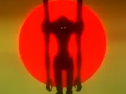 ![]() Eva-03 possessed by Angel Bardiel with the Sun behind it. Writer Virginie Nebbia noted how "Ambivalence" uses directional techniques used by Ultraman director Akio Jissoji, particularly the use of scenes illuminated by the read of the sunset. | |