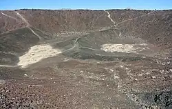 Amboy Crater is a dormant cinder cone volcano that rises above a 70-square-kilometer (27 sq mi) lava field in the eastern Mojave Desert of southern California, within Mojave Trails National Monument.[2][4]