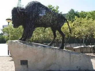 American Bison, is a public sculpture by American wire sculptor William E. Arnold, located in Indianapolis, Indiana within White River State Park. The sculpture is a life-sized male bison constructed of barbed wire, densely coiled and woven. The figure is facing north and stands on a rough limestone block base. It is located on the west end of the Washington Street Bridge at the entrance to the Indianapolis Zoo. It is 5'9" in height, 7'2" in length and 2'2" in width.[1] The barbed wire bison with the limestone pedestal weighs 17 tons.[2]