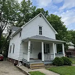 The American Football House became a landmark for emo music fans, who often visit the house to take photos. Music journalist Sean Neumann, who documented the history of the house for Vice, noted that fans have carved markings into the sidewalk in front of the home where Strong took the original photograph.[23] The house would later take a leading position in the band's reunion,[10] and the interior of the house later used for the cover of their eponymous second album. Kinsella revealed that the repeated references to the house was due to the fact it was one of the few images related to the band.[10][nb 2] American Football revealed they, Polyvinyl, Chris Strong, Atiba Jefferson and Open House Contemporary had collectively purchased the house on May 5, 2023, "in an effort to preserve its place and legacy within the community that built it."[41]