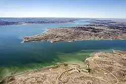 The Nature Conservancy determined in 1999 that the northern Great Plains were the most viable for restoring the region's habitats and conserving the existing diversity of plants and animals.[27] The upper Missouri River and its banks within the Charles M. Russell National Wildlife Refuge (Russell NWR) had been designated a National Wild and Scenic River in 1976. The relatively pristine condition of the land and the diversity of wildlife species north of Russell NWR was identified as a top priority for grassland conservation.[28] The adjacent 377,000-acre (589 sq mi; 1,526 km2) Upper Missouri River Breaks National Monument was created in 2001 with public lands that were mostly already managed by the federal government. The area, managed by the Bureau of Land Management, is series of badlands characterized by rock outcroppings, steep bluffs, and grassy plains; a topography referred to as "The Breaks" as the land appears to "break away" to the river. Shortly after The Nature Conservancy issued the report, the World Wildlife Fund decided to initiate a conservation effort in the Montana Glaciated Plains and determined that an independent entity was needed that would be capable of focusing all of its time and resources on the preservation effort.[28]