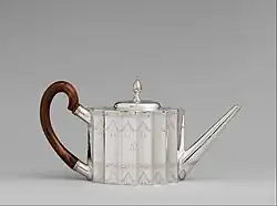The view of tea in American culture began to shift when the British government introduced the Townshend Acts in 1767. Tea was taxed as part of these laws which made it less affordable for the colonial population. However, cheaper tea was still smuggled into America.[12] Later in 1773 the Tea Act was put into place which allowed the East India Company (EIC) to gain a monopoly on tea sales in America by being able to sell tea at prices that were cheaper than both the colonial tea importers and smugglers.[13] This infuriated American colonists and led to the Boston Tea Party, where 90,000 pounds of EIC tea were dumped into the Boston Harbor. As news spread, tea was destroyed throughout the colonies. In Greenwich New Jersey for example, chests of tea were burned in Market Square.[9]