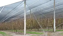 Amiens is a fruit and vegetable growing district. As the Granite Belt suffers from regular hail, many orchards are protected by hail nets. Traditionally hail nets were intended to prevent the hail from entering the orchard; however, the heavy hail would pool in the nets and break through onto the orchard below. Modern hail nets are designed to have gullies between the rows of the trees which allow the hail to fall into the orchards but avoiding the fruit on the trees.[22]