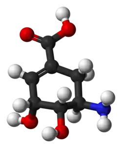 - ^ Guo, Jiantao; Frost, John (2004). "Synthesis of aminoshikimic acid". Organic Letters. 6 (10): 1585–1588. doi:10.1021/ol049666e. PMID 15128242.