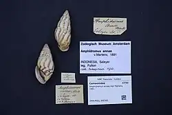 Shell of Amphidromus annae (specimen at Naturalis Biodiversity Center) | |
