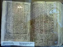 The Ashkharhatsuyts[21] (Classical Armenian: Աշխարհացոյց, Ašxarhac’oyc’, lit. "showing the world") is an anonymously published world map, believed to have been written sometime between 610 and 636,[84] "probably shortly before AD 636", i.e. the Muslim Arab invasions and conquests.[85][16] It lacks a drawn map, but contains "earliest surviving detailed description of Armenian lands."[86] Its authorship has been disputed in the modern period; formerly believed to have been the work of Movses Khorenatsi, most scholars now attribute it to Anania.[87] Hewsen calls it "one of the most valuable works to come down to us from Armenian antiquity."[88]