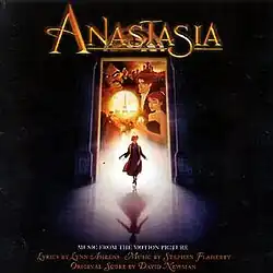 Anastasia: Music from the Motion Picture is the soundtrack for the 1997 Don Bluth/20th Century Fox animated film Anastasia. It contains songs from the film written by Lynn Ahrens and Stephen Flaherty, selections of the original score composed by David Newman, and performed by Liz Callaway, Jim Cummings, Jonathan Dokuchitz and Kelsey Grammer, among others, and features singles by Aaliyah and Deana Carter, and a duet with Richard Marx and Donna Lewis, along with tracks from the film's score composed by Newman. It was released on October 28, 1997, on CD and audio cassette.