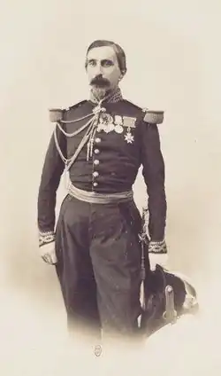 André Charles Victor Reille (23 July 1815 in Paris – 19 January 1887 in Antibes) was a French general. Born into a military family, he studied at the Military School of Saint-Cyr and was a cavalry lieutenant by 1838, captain in 1841, before becoming an aide to General Oudinot, squadron leader in 1851, Lieutenant-Colonel in 1855, colonel in 1859, brigadier general in 1865, and major general in 1875. He was an aide to Napoleon III beginning in 1859 and gave Napoleon's letter of surrender to King William of Prussia at the Battle of Sedan in 1870.[1]