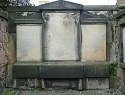 He is buried together with many of his family in a mausoleum in Buccleuch Churchyard. As a favour, one of his prodigy students is buried in the tomb, having died during his studies: Charles Darwin (1758–1778) by blood the uncle of his namesake Charles Darwin the naturalist, but dying before his birth.