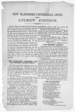 - ^ "Our New Republican Vice President Requested to Resign". The Cincinnati Enquirer. March 11, 1865. p. 1. Retrieved 2023-12-29.
