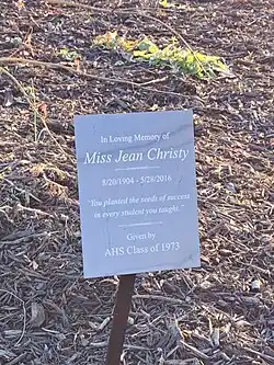 Just across the street, the road that leads to Andrews Elementary School was renamed from Walnut Street to Jean Christy Avenue in 2016.